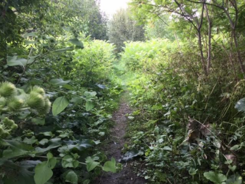 Until a few months ago pedestrians had the option of avoiding the stress and danger of walking on the paved (yellow) bike path by walking along the most westerly footpath (shown on my sketched map as the red path interrupted by the blue rectangle). As described above, the most southerly portion of that path is now passable again and I will use it on my daily walks (as will many other pedestrians wishing to make proper use of the park).