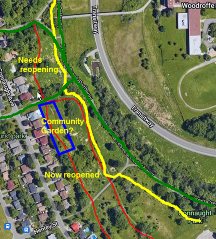I personally would like to see the encroached land turned into a community garden (as it is zoned for in the City of Ottawa Master Plan). Failing that, the area must return to proper use as public parkland. To accomplish that, all of the encroaching parties must be served legal notice and instructed to cease and desist damaging the park's public use as a pedestrian footpath. Please call me at your convenience, we need to talk soon about resolving this matter.